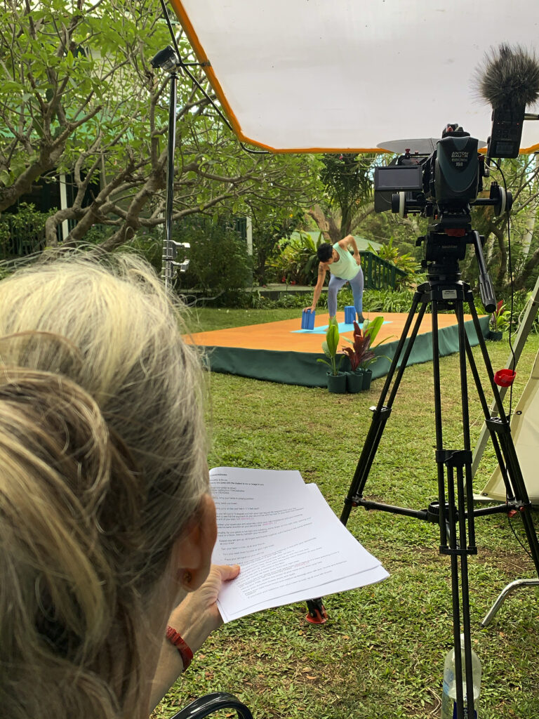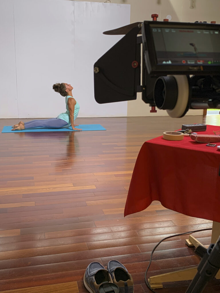 With Jesse Tunison, an extraordinary videographer, we brought this dream to life. I scripted 48 poses, enlisted three wonderful yoga models, and we filmed with my husband, Eric, behind one of the two cameras.